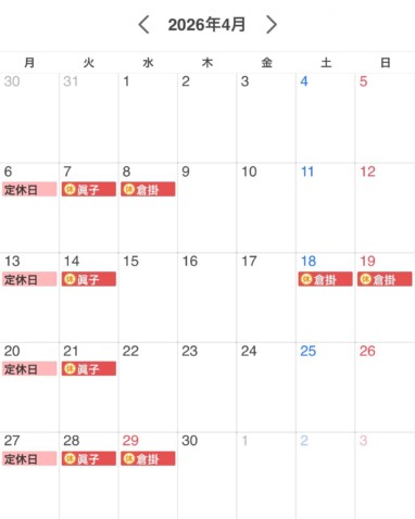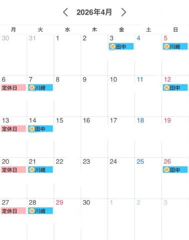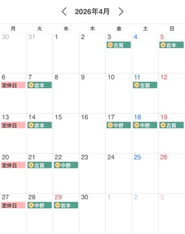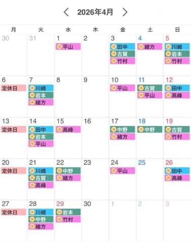 4月のスタイリスト別シフト休みです